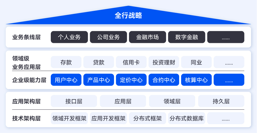 為深入推進數字化轉型,提升“以客戶為中心”的用戶服務體驗,結合整體數字化轉型戰略目標與路徑,借鑒互聯網金融與金融科技的最佳實踐,建設復用能力強、面向未來創新需求、敏捷、共享、開放、高效的企業級業務中臺,可達到“純渠道、厚中臺、穩后臺”的整體架構模式,實現業務敏捷創新和高效運營,滿足全行的戰略。